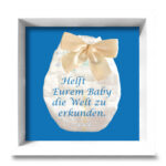 Diese liebvoll gestaltete bestickte Windel im Rahmen ist das perfekte Geschenk zur Geburt für alle, die etwas Besonderes schenken wollen. Sprüche zur Geburt kommen immer gut an und bleiben in Erinnerung. Verziert mit drei echten Swarovski-Kristallen bekommt die bestickte Windel im Rahmen eine ganz besonders wertige Note. Farbe: blau Spruch: Helft Eurem Baby die Welt zu erkunden Weitere Sprüche verfügbar. persönlich liebevoll
